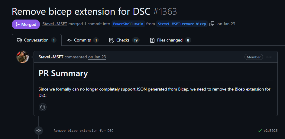 Many were shocked to see Steve Lee drop the support for Bicep in Microsoft DSC in his pull request on GitHub: