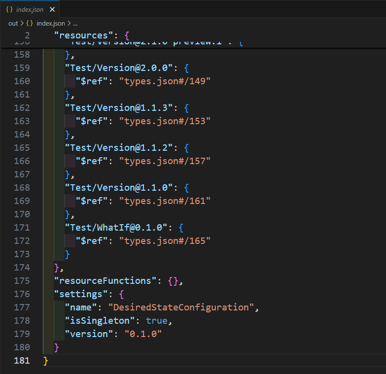 The architecture, therefore, has two moving parts (currently). The first one is the type generation. It's a small TypeScript CLI that collects every available DSC resource and its embedded JSON Schema. It converts those schemas into Bicep's type format and emits an index.json file: