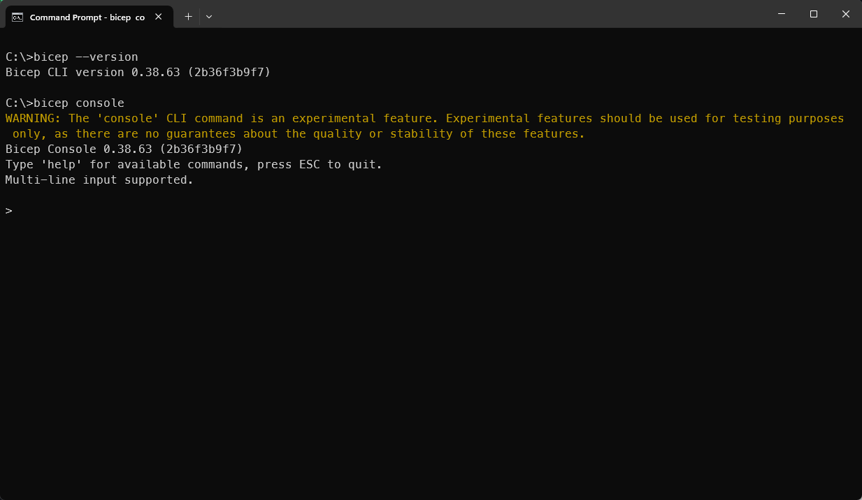 This quick feedback loop makes it easier to explore how Bicep handles expressions and logic. Once you get used to it, you'll jump into the console to validate syntax or experiment with ideas before you actually use it in a real Bicep file.