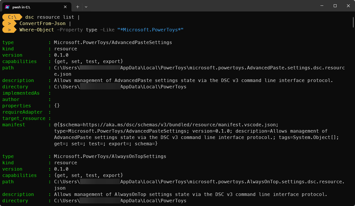 }That still leaves us with one piece, the type name. If you had installed PowerToys through winget and the location is discoverable by the PATH environment variable, the fully qualified type name was discovered: